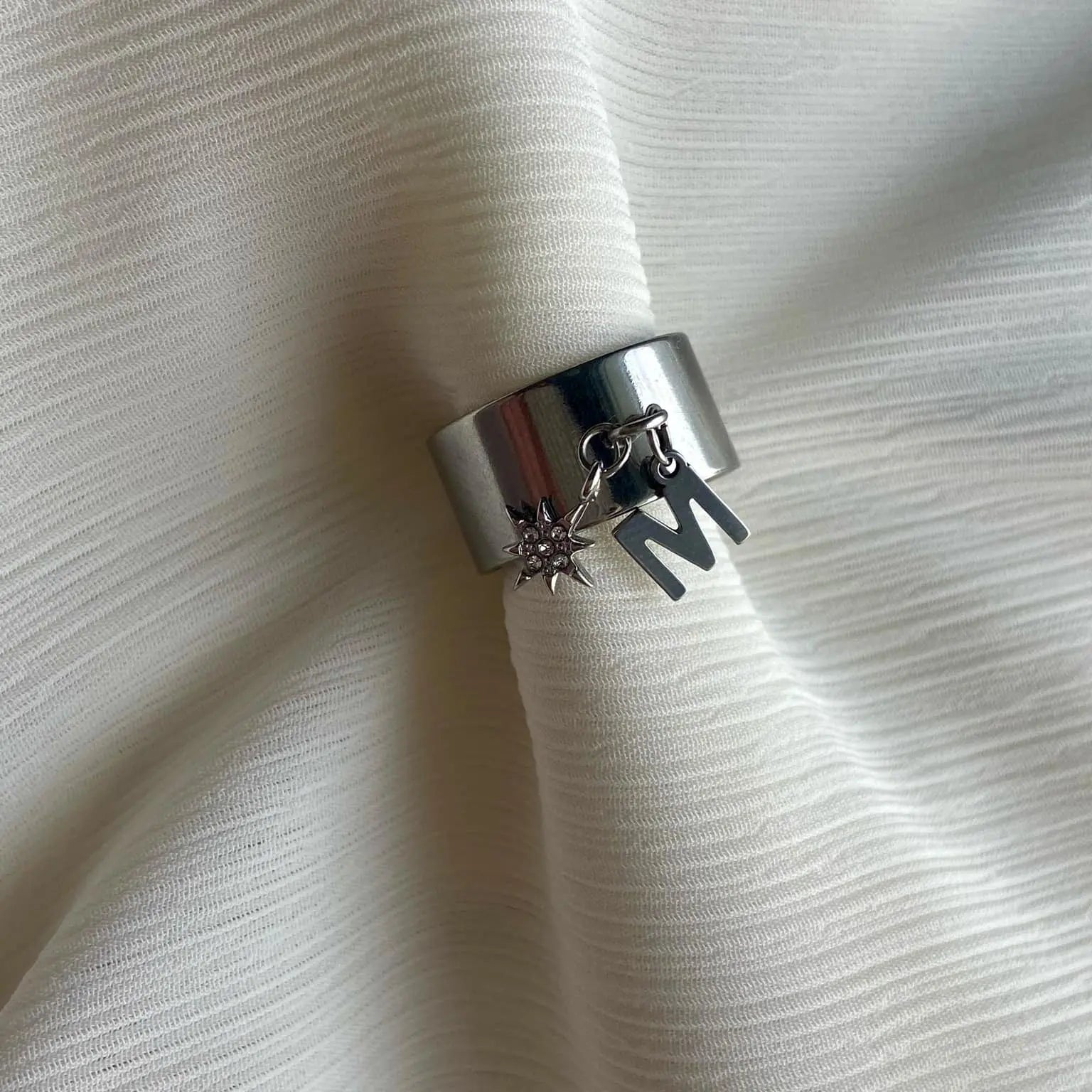 Personnalisable ta bague ajustable avec la lettre et le charm de ton choix.