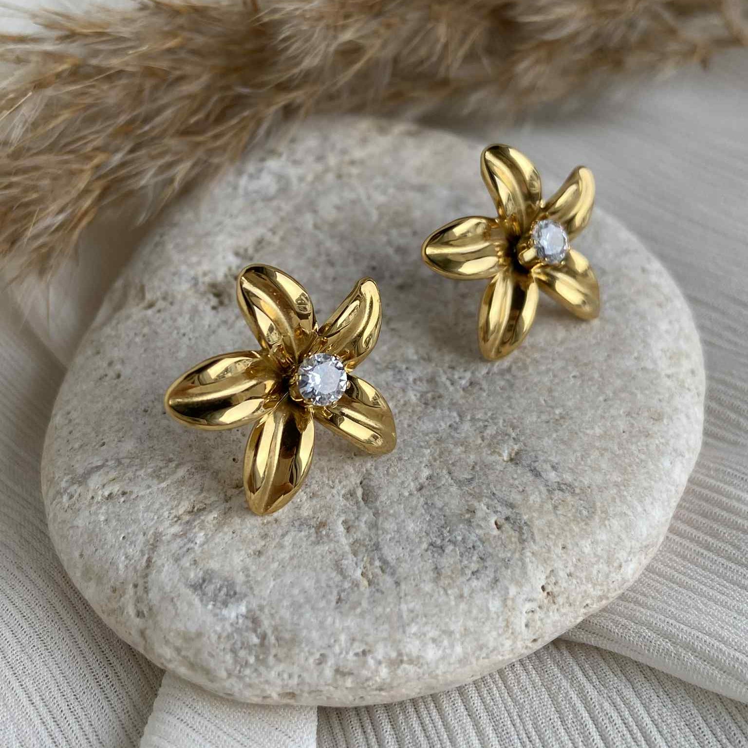 Les boucles d'oreilles FLORA sont délicatement décorées d’un strass brillant au centre, offrant un éclat subtil. Leur design épuré et léger les rend idéales pour une touche élégante au quotidien.