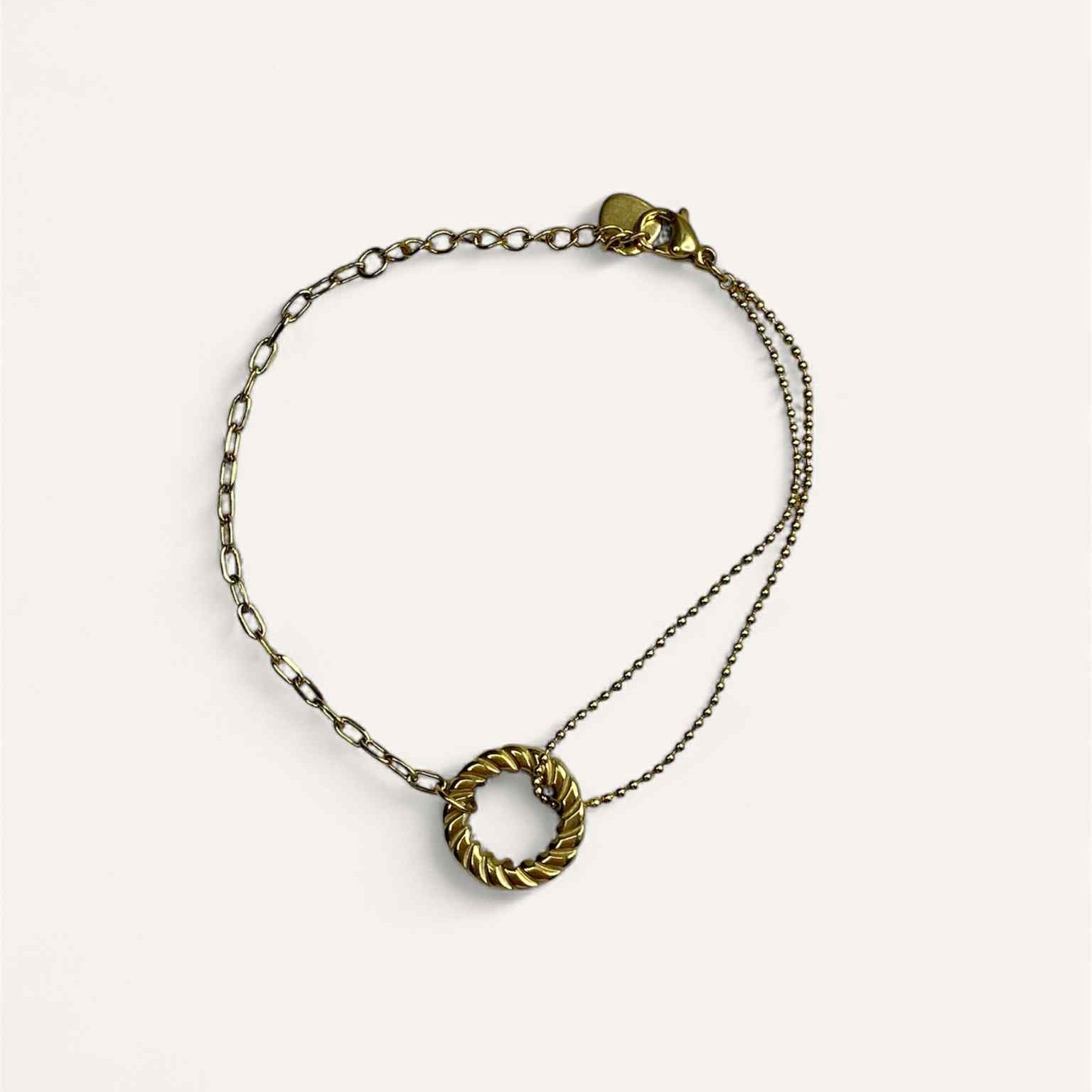 Ajoutez une touche élégante à votre tenue avec le bracelet AVA. Le pendentif rond strié au centre ajoute un charme unique tandis que les 2 chaînes différentes créent un look tendance. Parfait pour toutes les occasions, ce bracelet vous fera remarquer avec son style simplisme.
