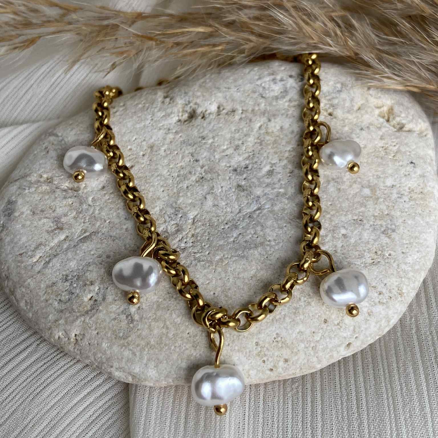 Le bracelet Calypso, orné de perles blanches, apporte une touche élégante et délicate à votre tenue. Léger et intemporel, il se porte facilement au quotidien pour sublimer votre style avec discrétion.
