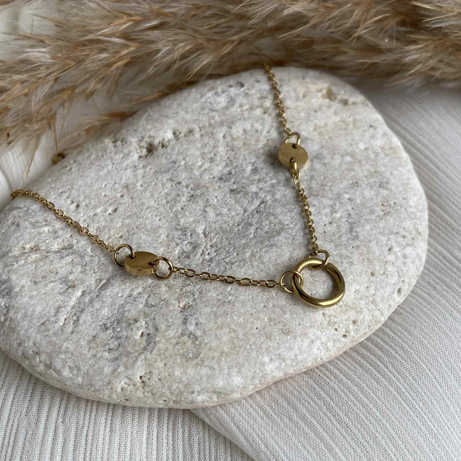 Ajoutez une touche de charme à votre tenue avec le bracelet SOFIA. Ce bracelet simple comporte deux petites médailles et un petit cercle au milieu pour un look élégant et délicat.
